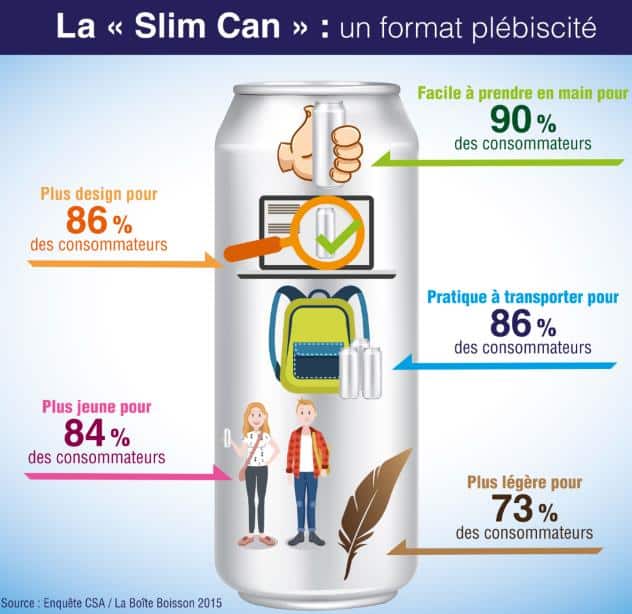 Sur le marché du hors domicile, 75% des canettes sont désormais vendues en format « slim » ou « sleek » et environ 40% en magasins. 100% des eaux et des boissons énergisantes sont même vendues en format slim. Et l’ascension n’est pas prête de s’arrêter, avec de nombreux lancements prévus tout au long de l’année 2017 par les grandes marques du marché. Face au succès, le secteur de la Distribution Automatique commence même à modifier ses appareils pour s’adapter à ce nouveau format !