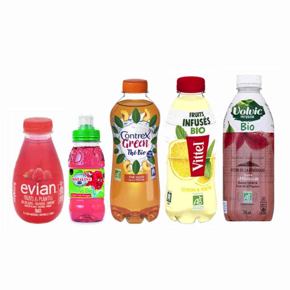 La conversion au bio des produits de grande consommation gagne même le rayon des eaux. Et pourtant, paradoxalement, les eaux nature en bouteille (eau de source ou eau minérale), produits naturels par excellence, ne peuvent prétendre au label bio, la réglementation ne s’appliquant pas à cette catégorie. Pour “contourner“ cet obstacle et pouvoir afficher le logo Ab, nombre de marques d’eaux plates ont imaginaient des recettes aromatisées à base d’ingrédients bio : Evian, Vittel, Volvic, Contrex et même Cristaline. Autant de produits conditionnés en bouteille plastique. Du côté des eaux gazeuses, jusque-là, seules deux signatures se revendiquaient bio : Wat Water d’AlterFood en canette 33 cl  et San Pellegrino+tea en boîtes slim 25 cl .