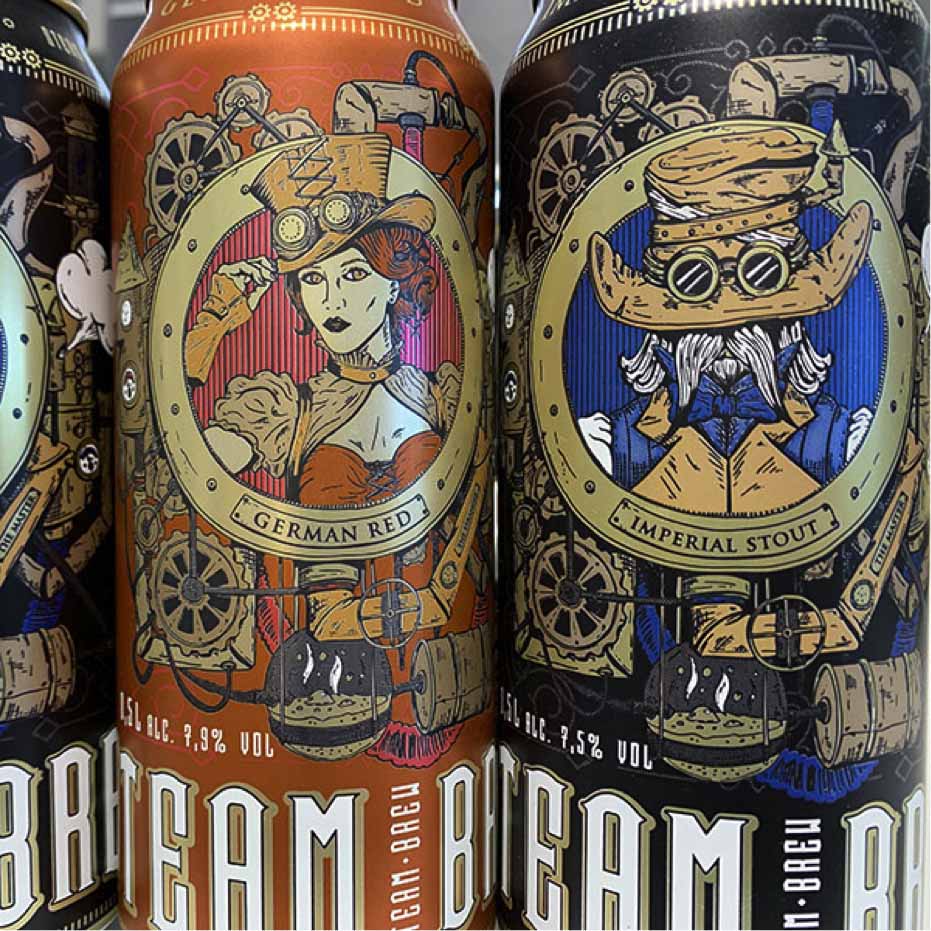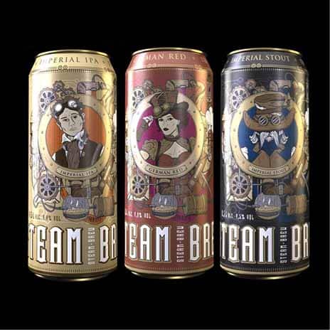 La mode des bières artisanales ou craft beers gagne même les enseignes de discount. Lidl en fait régulièrement la démonstration avec des foires à la bières particulièrement étoffées (où toutefois la boîte a peu ou pas voix au chapitre…). Aldi s’y met à sa façon en proposant une gamme inédite sur le marché français de trois références signées Steam Braü, une marque craft allemande des plus originales. En effet, comme son nom le suggère son univers fait référence au “steampunk“, un mouvement culturel qui mêle l’esthétique et la technologie du XIXème siècle à des éléments de science-fiction. Les œuvres littéraires, graphiques ou audiovisuelles se déroulent dans une réalité alternative où le progrès technologique est basé non pas sur l’électricité, mais sur la machine à vapeur. Les décors soignés des trois canettes 50 cl vendues chez Aldi (Imperial Stout, Imperial IPA et German Red ) reflètent parfaitement cet esprit.