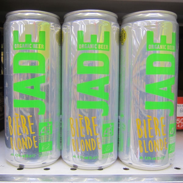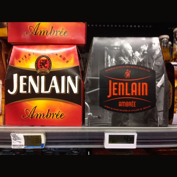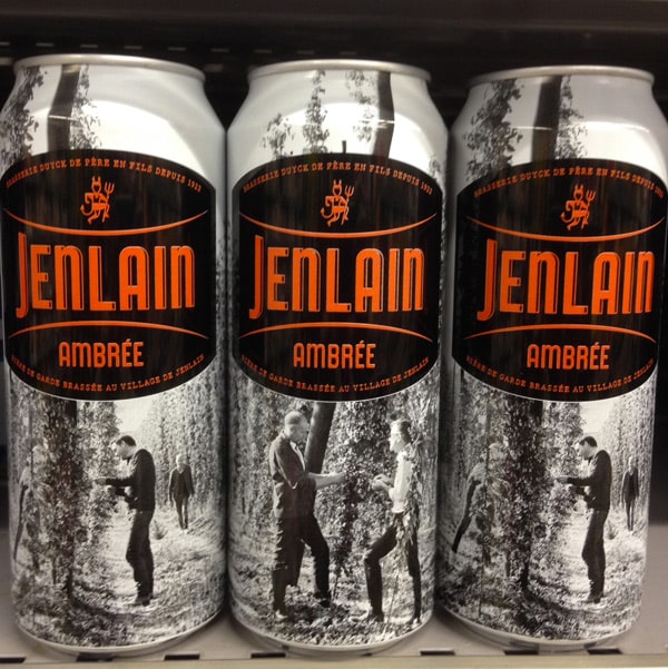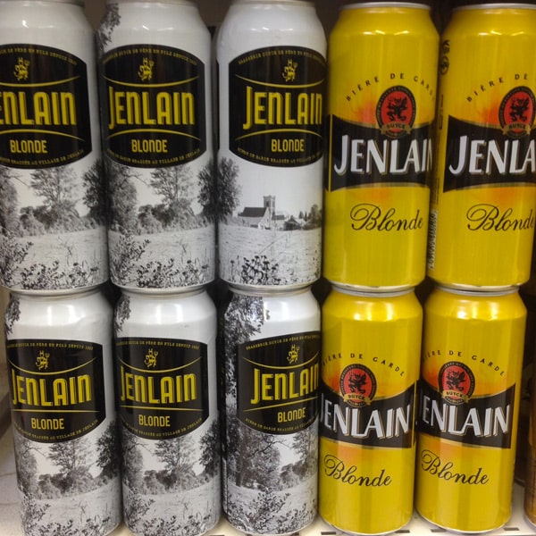 En effet, Jenlain, la marque phare de cette entreprise familiale (famille Duyck) sise au village de Jenlain (59) a opéré une profonde refonte de ses packagings. Ce faisant, Jenlain a réussi le tour de force de gagner en modernité et en valeur, tout en confortant ses valeurs historiques et en jouant la carte « vintage ». La chose est particulièrement marquée sur la canette 50 cl, conditionnement qui offre une grande surface de communication à 360°. Des clichés en noir et blanc revêtent le fond de chaque boîte avec un bloc marque noir où la signature et les différentes mentions sont inscrites d’une couleur dépendant de la robe de chaque type de bière : jaune pour la Jenlain blonde, orange pour l’ambrée et or pour la Jenlain Or, blonde de dégustation apparue en 2009. Les photos noir et blanc évoquent les grandes phases de l’élaboration d’une bière depuis la récolte du houblon jusqu’à l’embouteillage, en passant par le brassage.