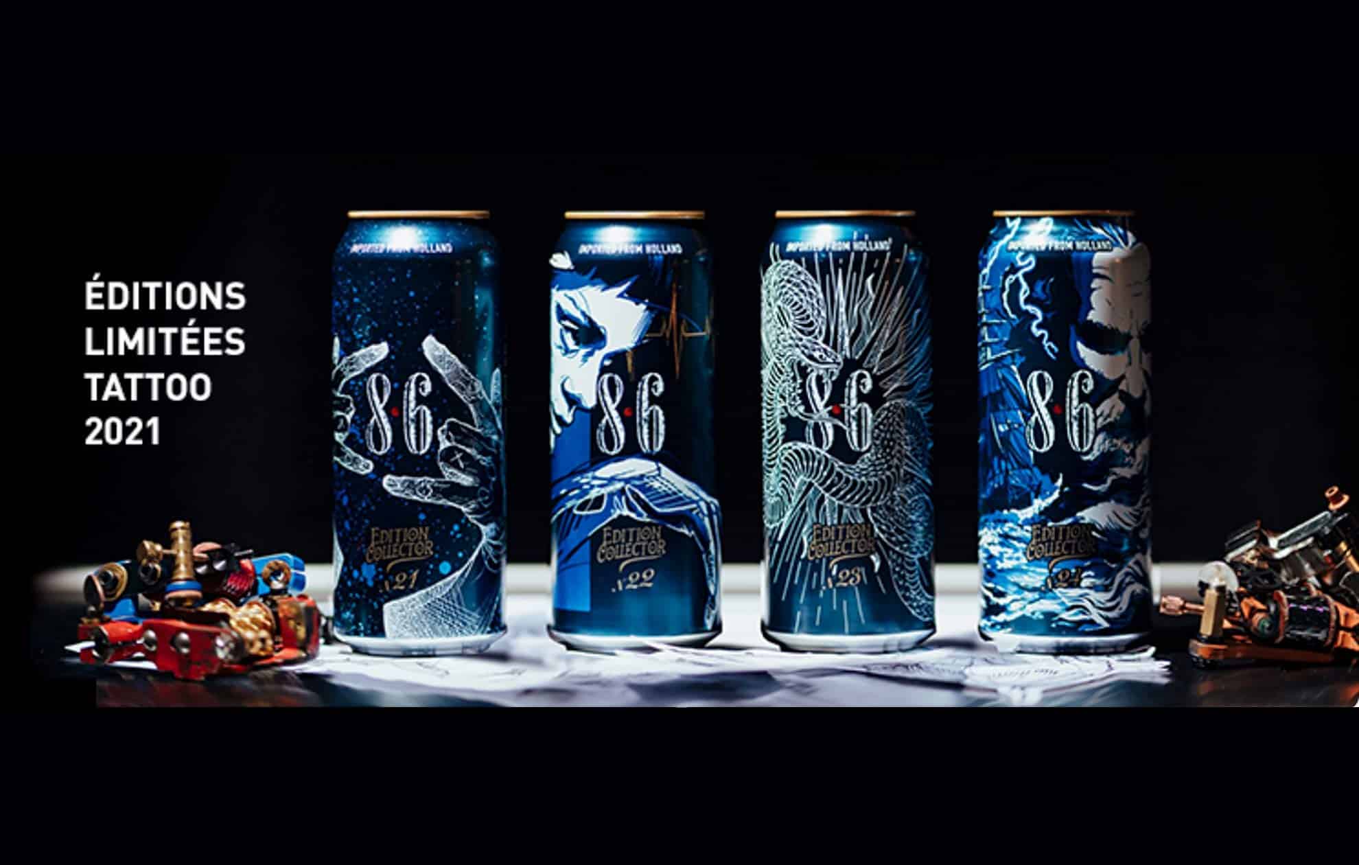 Pour la 6e année, la marque hollandaise de Swinkels Family Brewers vient de sortir sa série limitée de 4 boîtes décorées par 4 tatoueurs célèbres. Les premières boîtes collectors, numérotées de 1 à 4, ont vu le jour en 2015. D’autres ont suivi (cf. note ici). Parallèlement, la 8.6 Original s’est associée régulièrement au Mondial du Tatouage, sauf en 2020, Covid oblige.