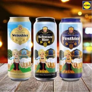 Ces offres de fond de rayon s’accompagnent en ce mois d’octobre d’une gamme de “fest bier“ à l’occasion de l’Oktober Fest. La gamme compte pas moins de 3 références en canette 50 cl (une blonde, une blanche ou weissbier et une brune ou schwarz bier). A noter que la blonde se décline également dans une boîte d’un format on ne peut plus festif, 95 cl, vendu en coffret avec une chope de même contenance.