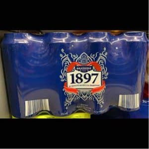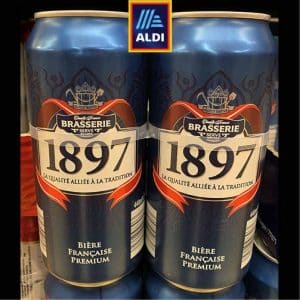 Honneur à Aldi qui en Angleterre devance son compatriote allemande de 2,2 points de part de marché (7,9 % vs. 5,7). Au rayon bières, sur le segment des blondes type lager ou pils, l’enseigne propose une offre composée de deux produits identifiés par un chiffre. The 1079 Project pour la pils d’entrée de gamme, titrant 4,6 % et conditionnée en canette 33 cl. Et 1897 pour la lager de 5° en boîte 44 cl. Si la première ne revendique pas d’inspiration particulière, la seconde est clairement un “me-too“ de la bière française 1664 qui fonctionne plutôt bien en Angleterre avec Eric Cantona comme égérie. Outre l’emploi d’une date comme signature, avec l’emploi d’une couleur bleu foncé dominante et les rubans rouges encadrant le bloc marque, la bière de Lidl clame haut et fort son origine française avec la mention “Bière Française Premium“, le terme “Brasserie“ et le slogan “La Qualité Alliée à la tradition“. Si la date 1664 commémore la pose de la première pierre de la brasserie strasbourgeoise de Jérôme Hatt (aux origines de Kronenbourg), 1897 se réfère, sans le préciser,… à l’année de naissance de la Brasserie de Champigneulles où ces canettes sont produites !