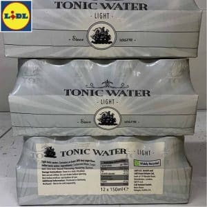 Chez Lidl, au sein de l’univers sans alcool, outre les classiques colas et energy drinks, l’offre de Tonic compte deux références. Une pâle imitation de Schweppes Indian Tonic en canette slim 33 cl et un Tonic Water Light (recette également inspirée de Schweppes) vendu en mini-boîte de 15 cl, en pack de 12 filmé. Un produit de type “mixer” adapté à la consommation en long drink, avec du gin, répandue outre-Manche.