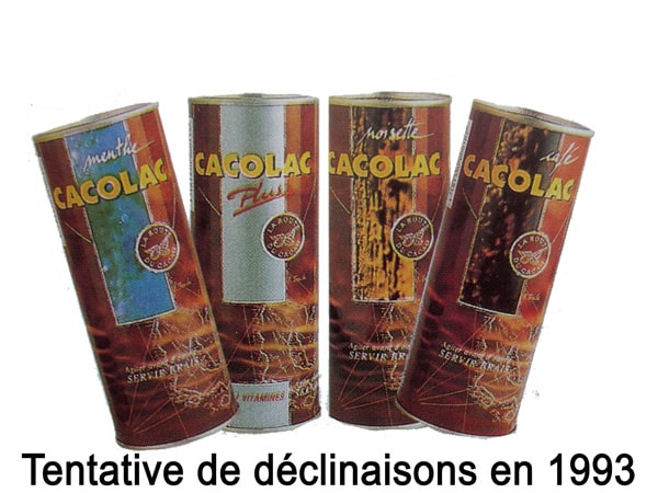 La marque Cacolac elle-même a jusque là eu beaucoup de difficultés à se diversifier et à développer « son » segment de marché par de nouvelles recettes. Ce n’est pas faute d’avoir essayé entre les versions chocolat/noisette, chocolat/café, chocolat/menthe et Cacolac Plus enrichi en vitamines (1993) ou encore un lait-vanille signé Vanilac (1995).