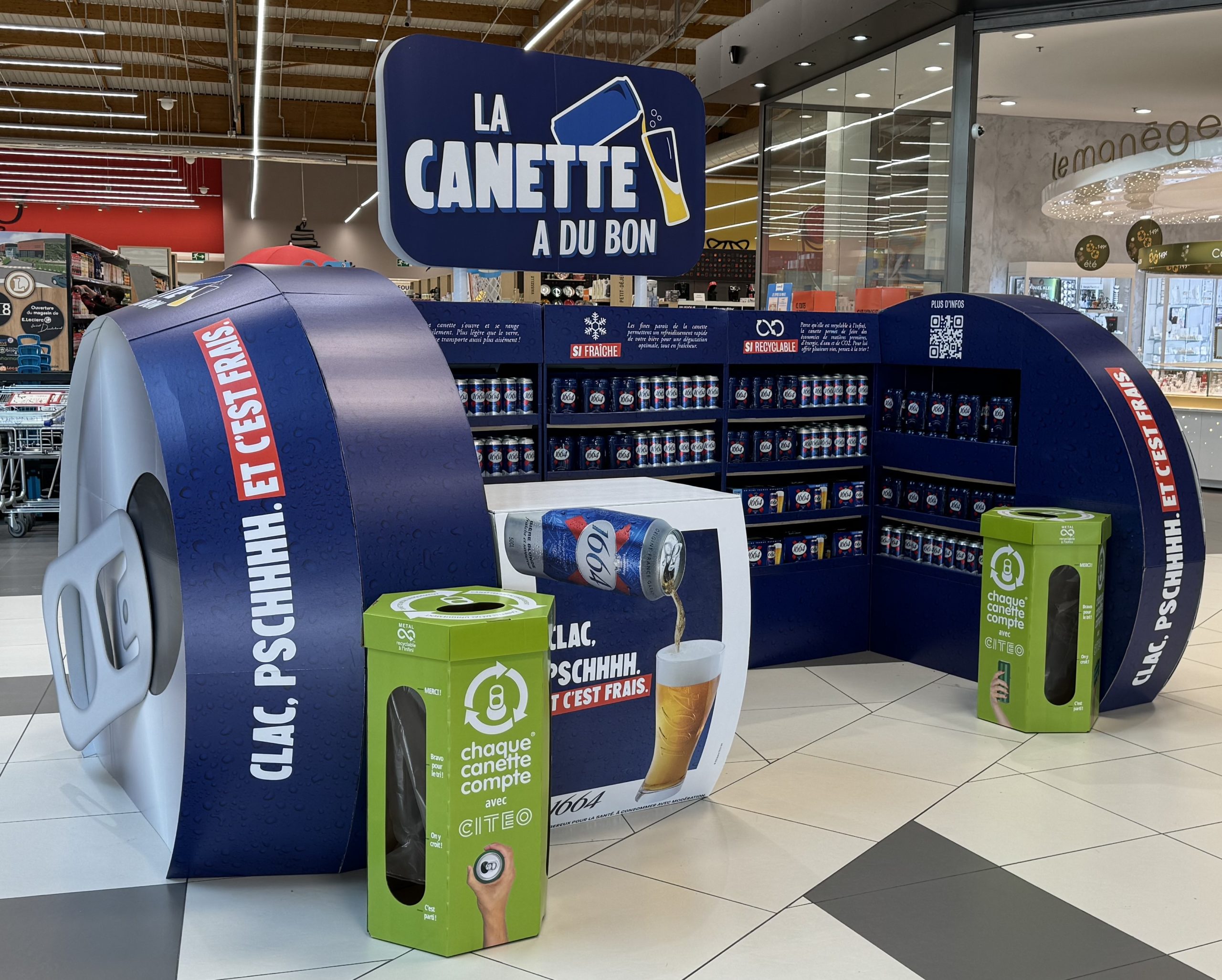 La canette, ce petit emballage nomade et durable qui a le vent en poupe ne cessent de surprendre les consommateurs ! Au plus près de leurs attentes, les entreprises du secteur ne cessent en effet d’innover, que ce soit dans les domaines de la créativité graphique, des actions de communication, de la mise en avant dans les circuits de distribution, d’innovations produits, mais aussi en matière d’engagement durable et de recyclage ! C’est notamment le cas des Brasseries Kronenbourg, qui, pour faire connaître les atouts de la canette aux consommateurs, lance l’opération « la canette a du bon » en collaboration avec le programme « Chaque Canette Compte ». Lancée partout en France dans près de 600 grandes et moyennes surfaces (Leclerc, Super U, Intermarché, Carrefour, Auchan…), cette opération qui s’appuie sur une PLV en forme de canette, s’achèvera en septembre.
