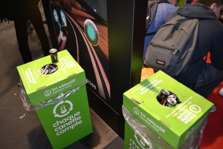 Sollicité par Comexposium, organisateur du salon, l’opération Chaque Canette Compte en partenariat avec l’association « Les Connexions », spécialisée dans l’animation et la mise en place de tri sélectif sur de telles manifestations, a remporté un franc succès auprès des « gamers » et battu tous les records de collecte ! Près de 200 000 canettes ont été récoltées en seulement 5 jours, soit 2,5 fois plus que le précédent record enregistré par « Chaque Canette Compte », établi avec 80 000 boîtes boisson collectées aux 24 Heures du Mans lors de l’édition 2012. Leur recyclage représente jusqu’à 25 tonnes de CO2 économisé et, si elles étaient réutilisées pour fabriquer des poteaux en aluminium, elles pourraient permettre de réaliser environ 50 stands au Paris Games Week.