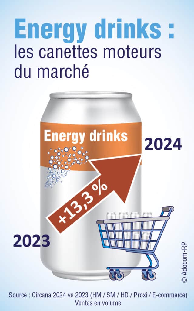 Si la canette gagne des parts de marché sur la quasi-totalité des soft-drinks (excepté le thé glacé et les boissons sportives), la croissance des canettes de soft-drinks est largement portée par les energy drinks. Sur ce segment, les canettes restent hégémoniques tout en conservant leur dynamisme, à +13,3 % vs +11,6 % pour le marché des Energy drinks au global.