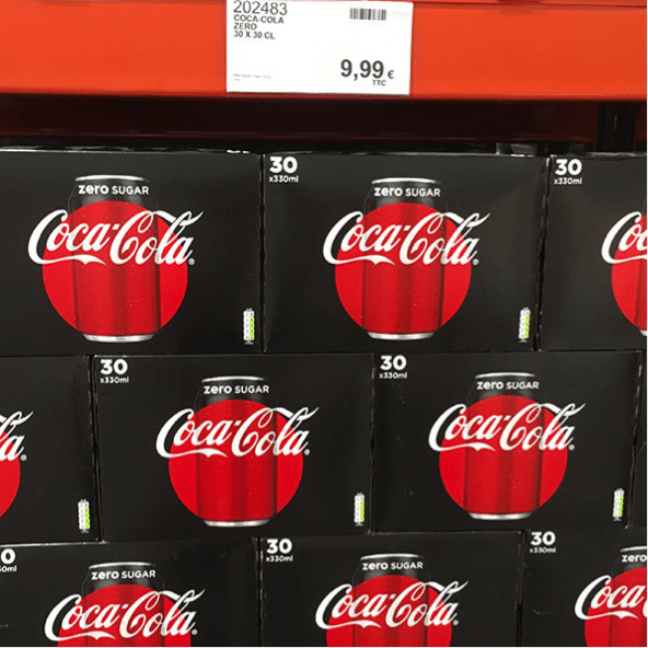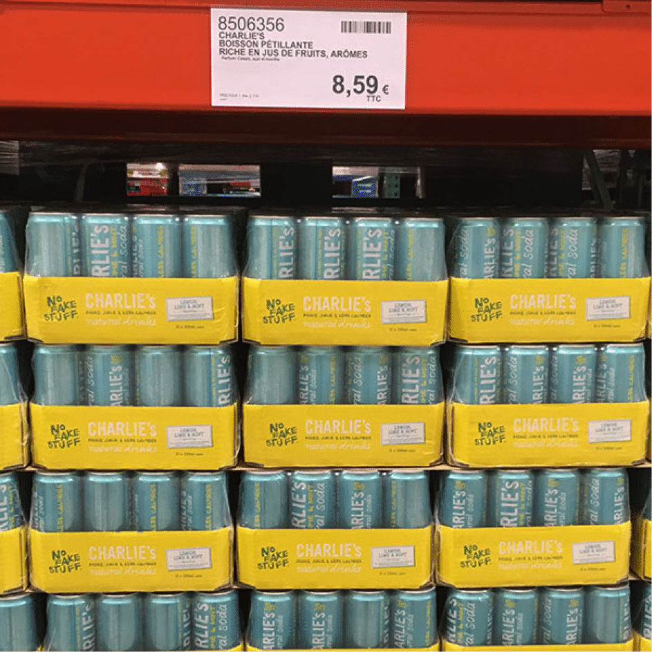 En France, le détail de l’assortiment révèle quelques surprises. A commencer par le n°1 des soft-drinks, Coca-Cola, qui ne propose que 2 références (tous conditionnements confondus !) : un pack de 30 canettes 33 cl en Coca-Cola classic et zero. De même la présence de références, certes porteuses, mais plutôt confidentielles comme les soft-drinks naturels Charlie’s ou les boissons aux fruits Smiley Fruity.