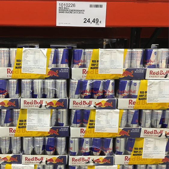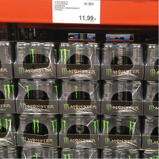 Si l’offre boisson est dans l’ensemble plutôt limitée, le conditionnement boîte est sur-représenté en soft drinks avec 16 réfs sur un total de 26 : Coca-Cola, Schweppes, Oasis, Red Bull, Monster…