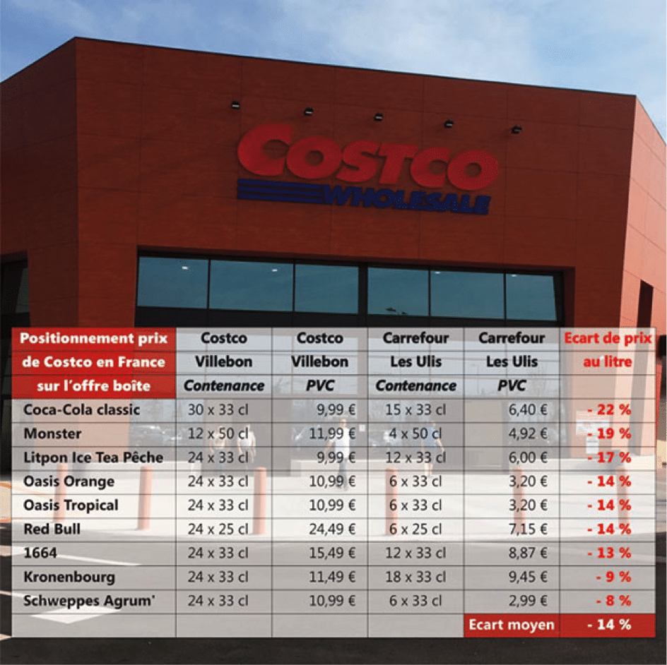 Redoutée parce que le concept Costco casse littéralement la structure de coût du retail. Par l’assortiment tout d’abord avec l’offre d’une (petite) supérette, 3 800 références, dans la coque d’un hypermarché (12 000 m2) ; par l’absence de services ; par l’absence de théâtralisation, tous les produits étant présentés sur palettes et, dans tous les cas, sans effort particulier de présentation.