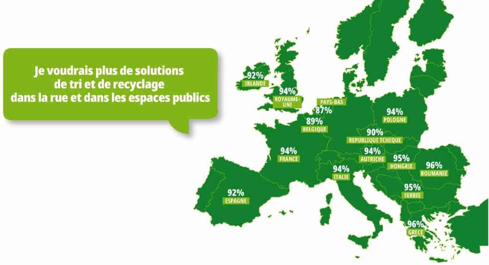 Enquête inédite : les Européens souhaitent voir plus de bacs de recyclage dans les lieux publics