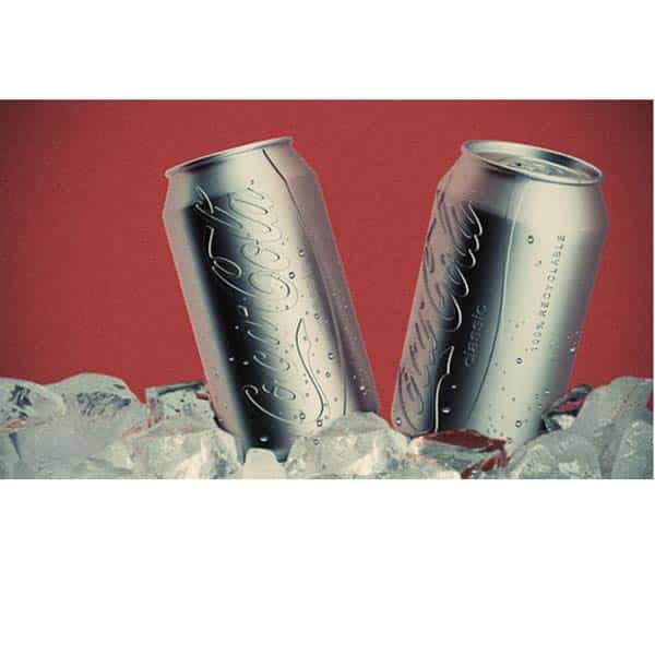 Les designers américains Ryan Yoon et Harc Lee ont revisité la boîte 33 cl de Coca classique. Leur concept s’inscrit parfaitement dans l’air du temps puisqu’il se veut particulièrement respectueux de l’environnement ou « eco-friendly » (leur site ici). En effet, la particularité de cette canette est de ne posséder aucun revêtement de couleur. L’identification de la marque se fait par l’inscription du célèbre logo en relief par un procédé d’embossage. Cette création épurée rend l’objet très design et plutôt haut de gamme dans la lignée de ces produits tout alu, à l’instar de ceux signés Apple.