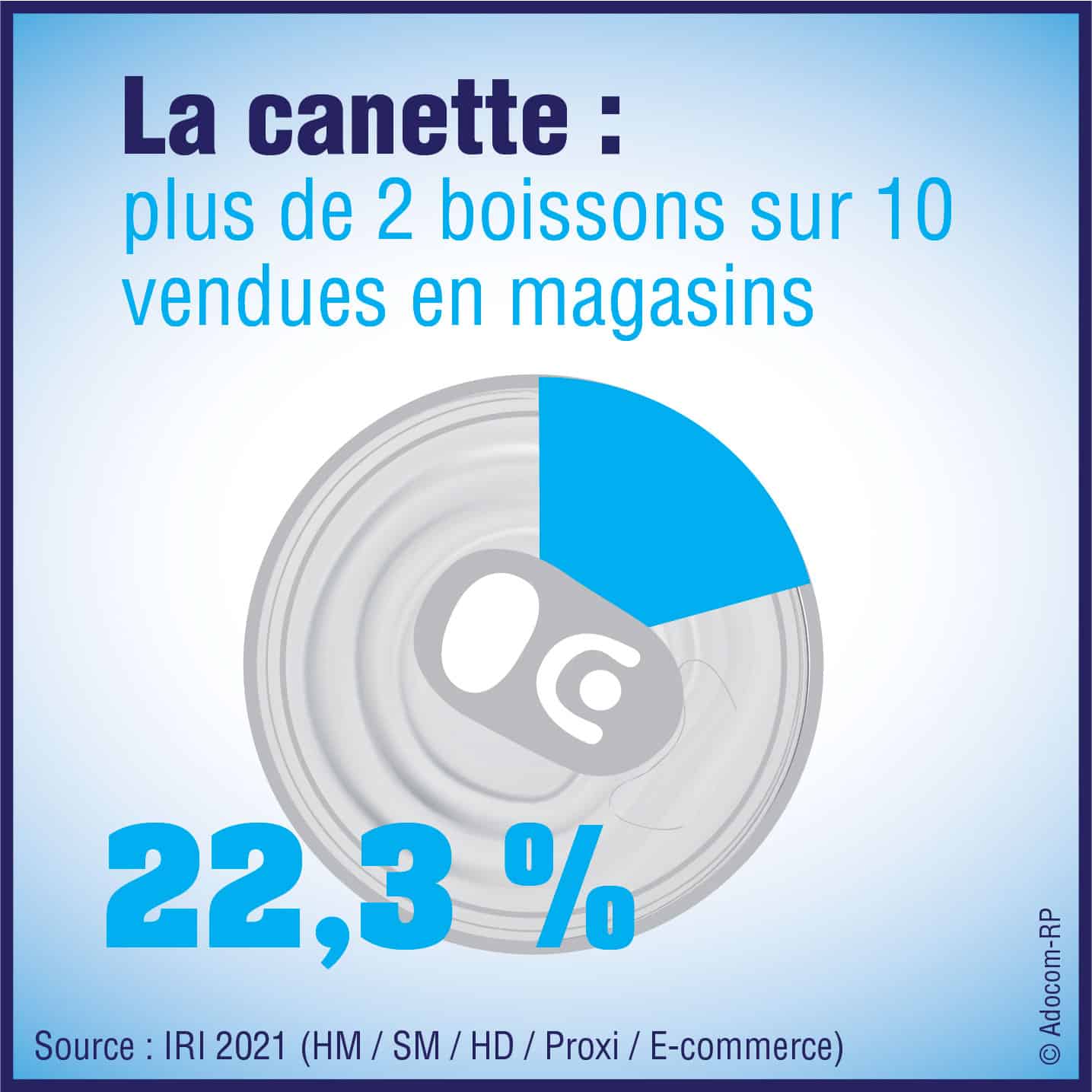En 2021, les Français ont acheté 23 % de leurs bières en canettes pour leur consommation à domicile. Une part de marché en léger recul de 0,3 point par rapport à 2020 en raison de la chute de la consommation des bières dites de « luxe », dans laquelle la canette est fortement présente et dont les ventes tous emballages ont diminué de -11,9% en volume sur 1 an.