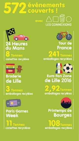 et, en 7 ans, il a directement touché 10 millions de Français sur plusieurs dizaines d’événements ponctuels (Tour de France, 24 Heures du Mans, Eurockéennes, Paris Game Week, etc.) ou sur près de 2 000 sites permanents (centres commerciaux, entreprises, etc.) sur des événements. Le programme, qui bénéficie du soutien de CITEO, structure née de la fusion d’Eco-Emballages et Ecofolio, réunit désormais plus de 40 partenaires de collecte à travers toute la France.
