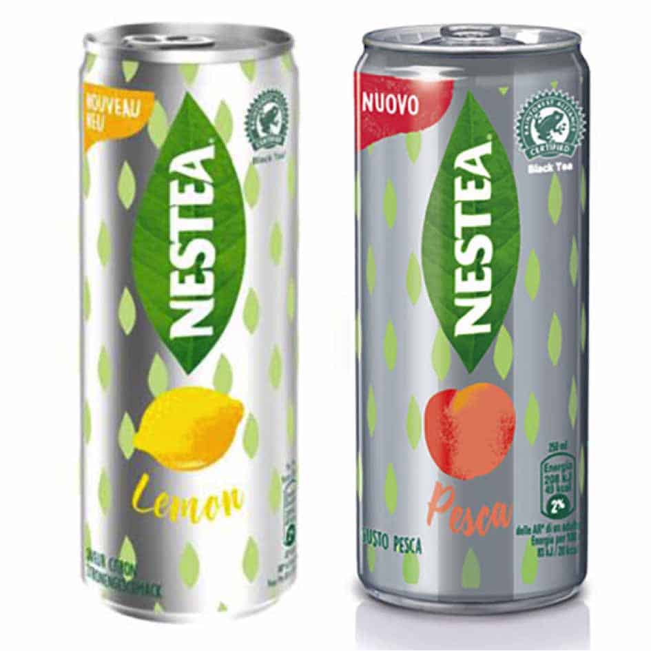 Marque historique de la catégorie, Nestea revient sous un nouveau jour à la faveur d’un changement de distributeur. En effet, suite à la rupture du contrat qui unissait Nestlé et Coca-Cola, Nestea se relance cette année sous la houlette d’Eckes Granini. La nouvelle gamme comporte 4 parfums, 2 thés noirs (pêche et citron) et 2 thés vert (citron vert/menthe et framboise), conditionnés pour l’heure seulement en bouteille PET 1 l. Des boîtes existent en Belgique et en Italie.