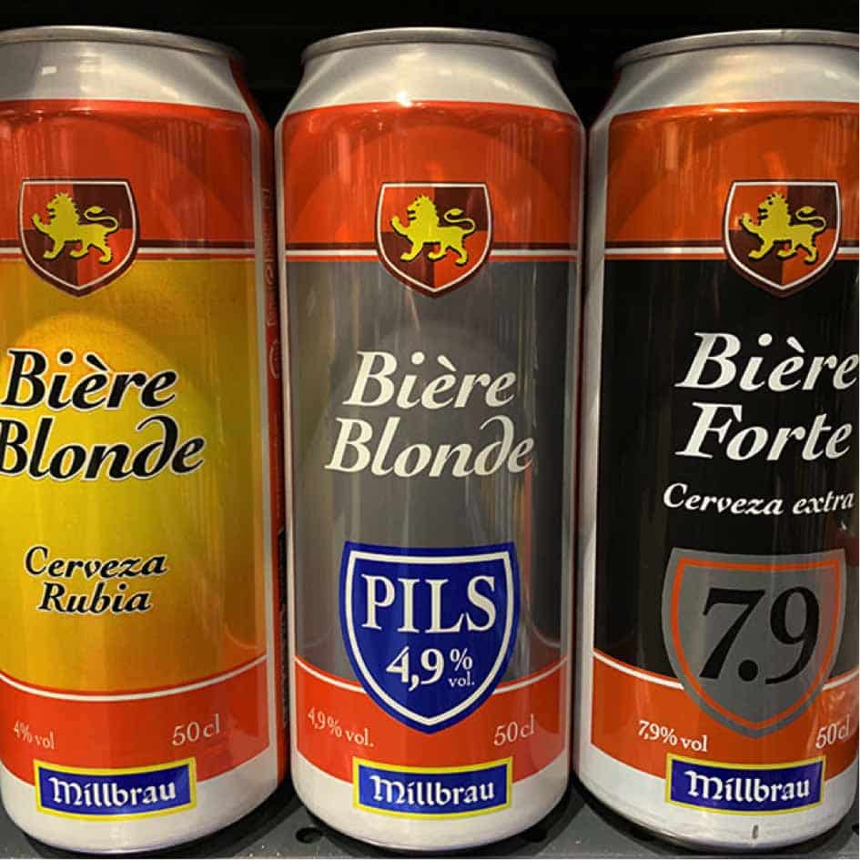 Parallèlement l’offre de bières premiers prix de Leclerc, signée Millbraü, s’étoffe avec désormais 3 références : une blonde 4°, une blonde pils 4,9° et une bière forte 7,9°.