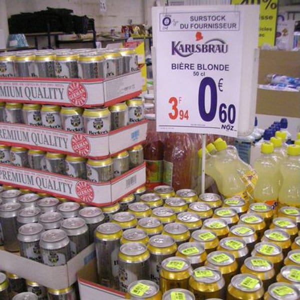 1 ) Les surstocks fournisseurs. Il peut s’agir d’une annulation de commande, d’une commande erronée et refusée, d’une erreur d’étiquetage, d’impression ou de conditionnement, de queues de promotions ou encore d’une erreur dans la prévision de production, notamment lors de la constitution des stocks saisonnier. Le magasin Noz proposait ainsi des boîtes 50 cl de bière blonde Karlsbraü, mais également des boîtes 33 cl de bières premier prix signées Becker’s ou Konigsbacher.