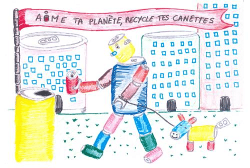 Présenté dans le supplément Mon Quotidien Environnement dédié au recyclage des canettes, les plus grands avaient jusqu’au 31 décembre pour envoyer leur dessin d’un objet, personnage, paysage,… réalisé à partir de canettes recyclées et à imaginer un slogan encourageant les consommateurs à recycler leurs canettes.