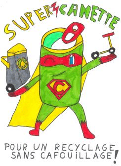Le 2 E PRIX est attribué à Raphaël , 8 ans, originaire de Saveuse (80) pour son dessin de « Super Canette » au slogan « Pour un recyclage sans cafouillage ! »