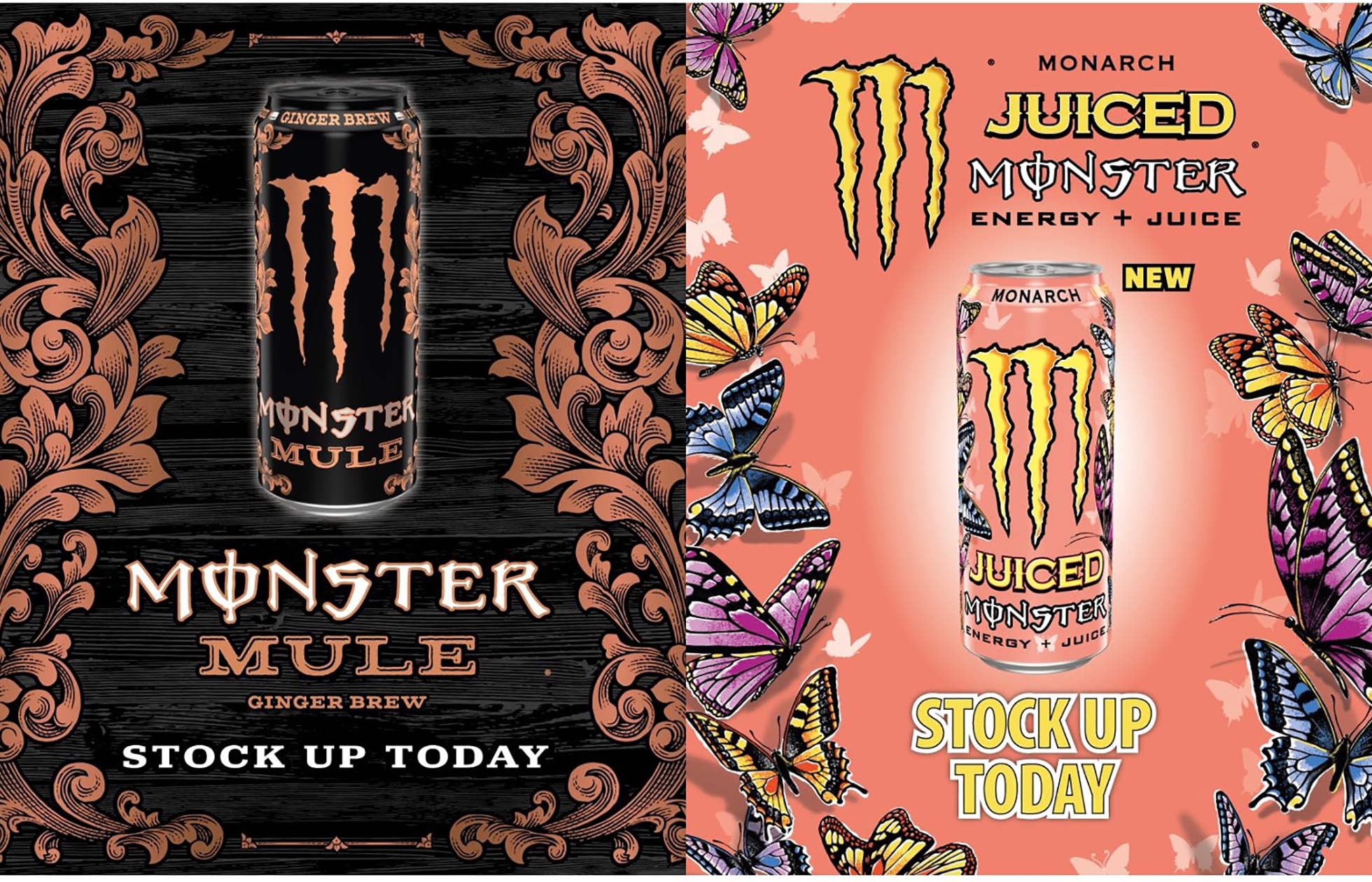 Alors que Pepsico lance Rockstar en concurrence frontale, Monster distribué par Coca-Cola EuroPacific Partners ne se repose pas sur ses lauriers et a sorti deux déclinaisons inédites cette année. Une fois de plus, ces nouvelles recettes arborent de superbes designs de boîtes.