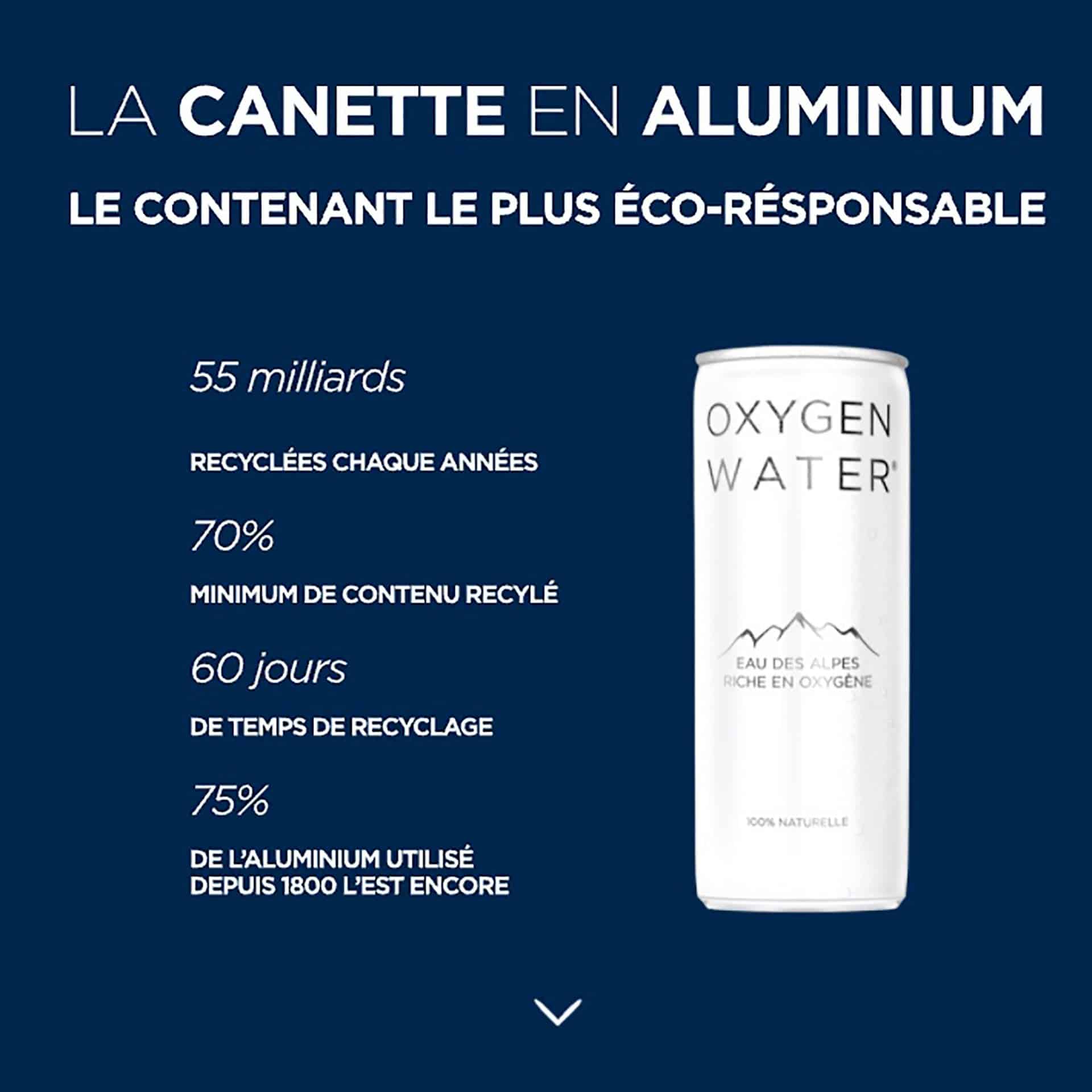 Oxygen Water, société française, commercialise depuis 2017 la marque d’eau en canette du même nom. Ces trois atouts selon les fondateurs Louis Biret et Gaston Ardisson : un emballage recyclable, un design efficace et un produit riche en oxygène. Un produit qui répond ainsi aux attentes actuelles des consommateurs. L’eau provient de la sources Lebensquell dans les alpes autrichiennes. A ce jour une seule référence est commercialisée : une eau plate en canette slim 25 cl de couleur blanche. Deux déclinaisons sont en projet : une version finement pétillante et une version « grosse bulles ». Initialement, Oxgen Water n’était proposée qu’en pharmacie et elle est à présent commercialisée dans les magasins Monoprix. A noter qu’Oxygen Water se veut un véritable ambassadeur du conditionnement canette comme on peut le voir sur son site web, mettant en avant sa recyclabilité et sa supériorité sur le plastique.