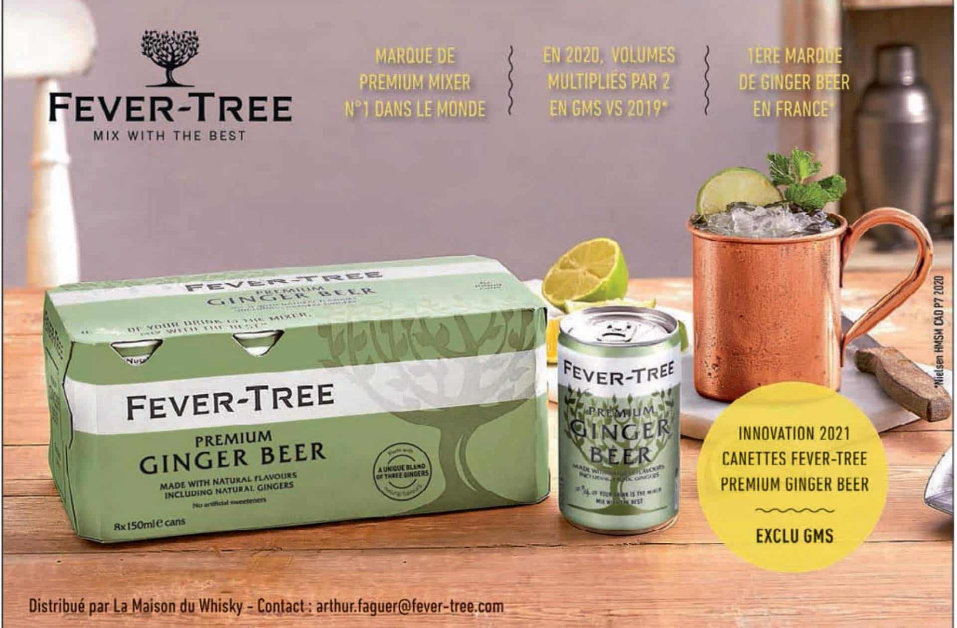 Pour les alcools blancs, l’Anglais Fever Tree se distingue particulièrement. Créée en 2004, sa gamme est désormais vendue en France. La marque tire son nom de « l’arbre à fièvre » produisant au Congo la quinine dont les extraits sont utilisés dans ses Tonic. Sans édulcorant, conservateur ou arôme artificiel, l’Indian Tonic Fever Tree est commercialisé depuis 2020 en grande distribution en pack carton de 8 mini canettes 15 cl. En 2021, Fever Tree a lancé sa version Ginger Beer pour s’attaquer à de nouvelles recettes de cocktails élaborés aussi bien avec des alcools bruns que blancs (Moscow Mule).  Un segment relativement récent initié en 2018 par Schweppes et sa référence Ginger Ale