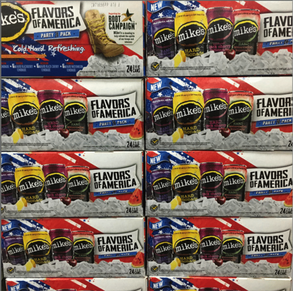 Le concept des pack panachés ou « party pack » est également utilisé par la marque de sodas alcoolisées Mike’s.