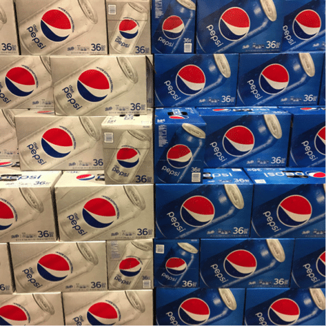 Au rayon soft-drinks, Coca-Cola propose ses références en packs de 35 boîtes et Pepsicola, 36 boîtes.