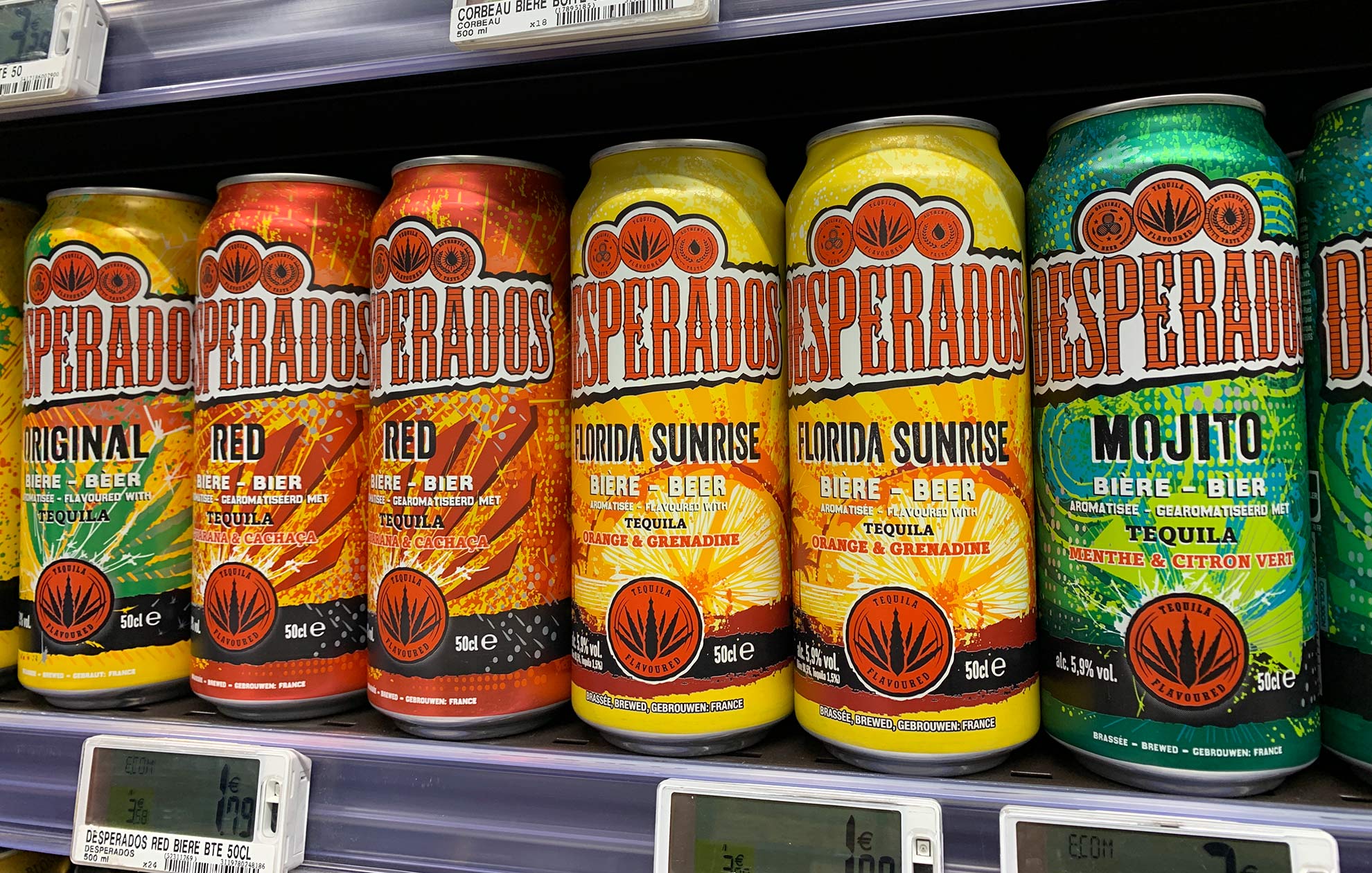Désormais, la gamme de canettes 50 cl signées Despé compte 4 saveurs : Original, Red, Mojito et Tequila Sunrise. La version Sangre n’est vendue qu’en pack de 6 canettes 33 cl, quant à Original elle existe en format 33 cl vendu en pack de 6 ou en frigo pack de 10. D’autres parfums ne sont qu’en verre : Lime, Virgin Mojito 0.0 et Ginger. Tout au long de son histoire, la marque a fait le tri dans ses parfums. Les recettes Fuego, Verde et Black ont ainsi tiré leur révérence. Quelle sera la prochaine saveur a porté les couleurs de Desperados ?