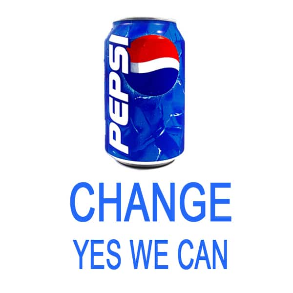 La victoire récente des bleus-démocrates contre les rouges-républicains aux Etats-Unis a inspiré les publicitaires, notamment le groupe Reflex qui a imaginé un visuel publicitaire comparatif pour la marque Pepsi (vu sur le blog : www.web-interactif.com). Quant au slogan, « Yes we can », il est tout trouvé pour une boisson vendue en grande partie en boîtes boisson (can).